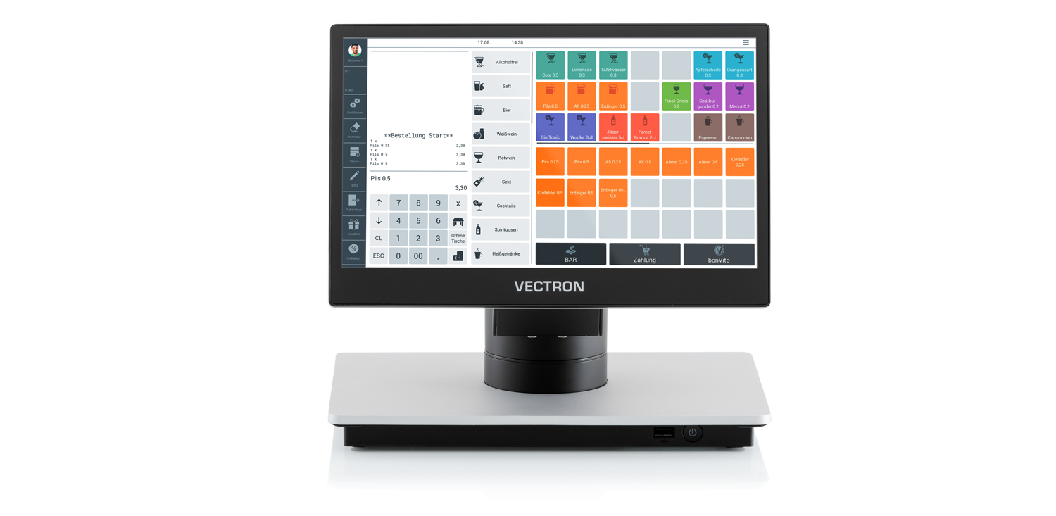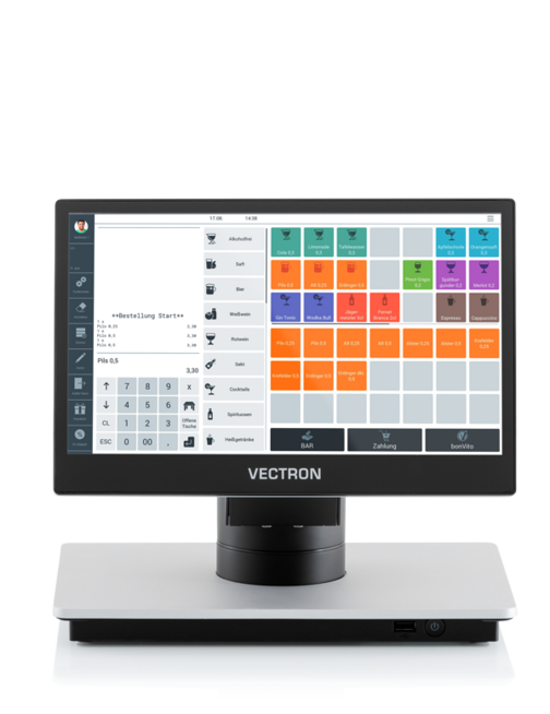 Malý 11,6" Full HD displej Vectron POS 7 Mini lze instalovat prakticky kamkoliv a displej je velice odolný. Kapacitní skleněná dotyková obrazovka je energeticky úsporná, neopotřebovává se a je vybavena funkcí swipe. Flexibilní, výkonný software lze individuálně přizpůsobit a naprogramovat a díky ergonomickému designu a dotykové obrazovce je ovládání mimořádně rychlé a pohodlné. K POS 7 Mini lze připojit mnoho relevantních programů a periferních zařízení pro optimální pracovní postupy.