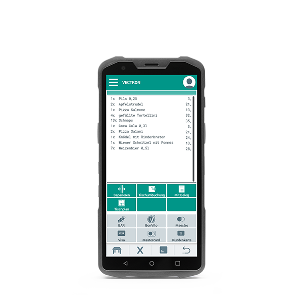 Mobilní pokladna je připravena na všechny výzvy v pohostinství. Rychlé a intuitivní ovládání pokladny zjednoduší a urychlí servis. Váš personál si mobilní pokladnu M4 oblíbí prakticky okamžitě. Detailní objednávky na bar, do kuchyně vám ušetří nejen čas, ale zkvalitní a usnadní celý objednávkový proces. Vyúčtování celého stolu nebo každého hosta/židle jednotlivě včetně vytištění příslušné účtenky a její úhrady přímo na místě, u hostů, zefektivní totálně obsluhu a zvýší celkovou spokojenost vašich zákazníků. Mobilní Vectron POS se stane nepostradatelným nástrojem pro váš personál.